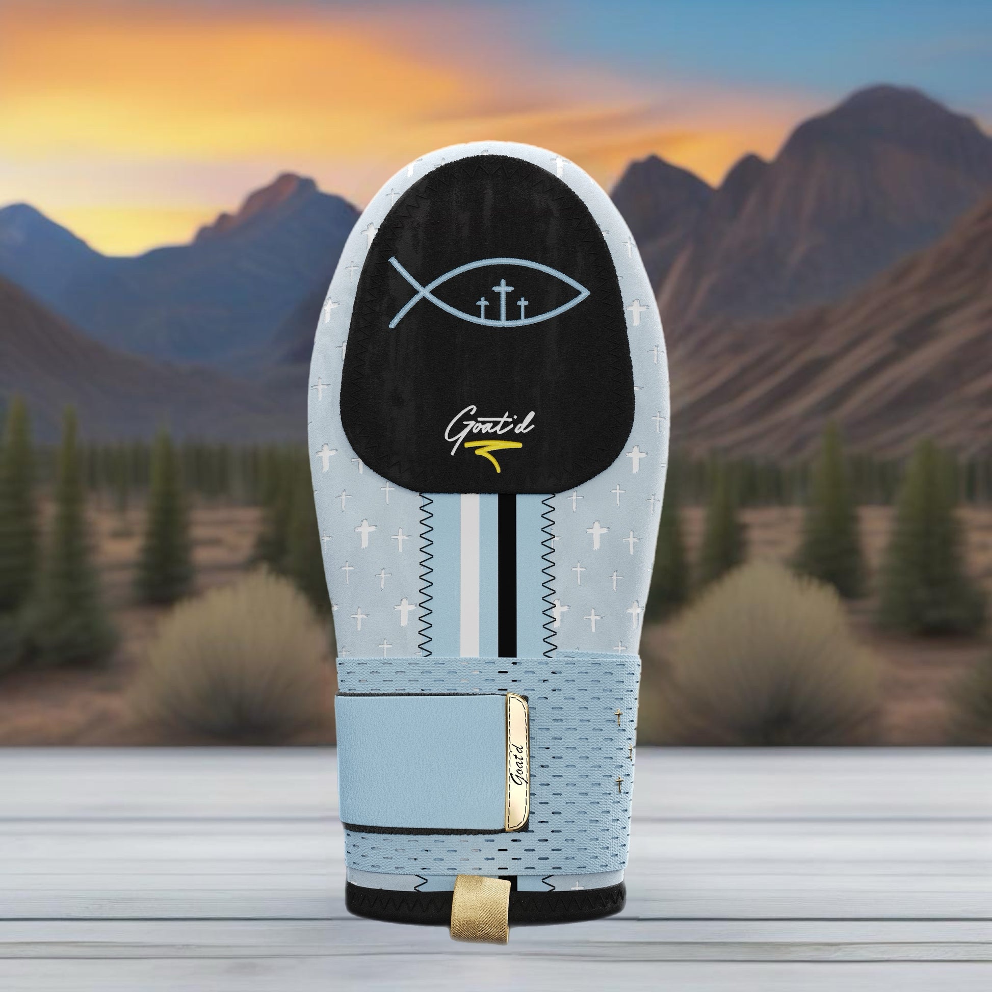 This glove represents more than just top-tier gear; it’s a symbol of faith, resilience, and hope. Outside light makes the glove a darker blue, inside light makes the glove a lighter Carolina blue.