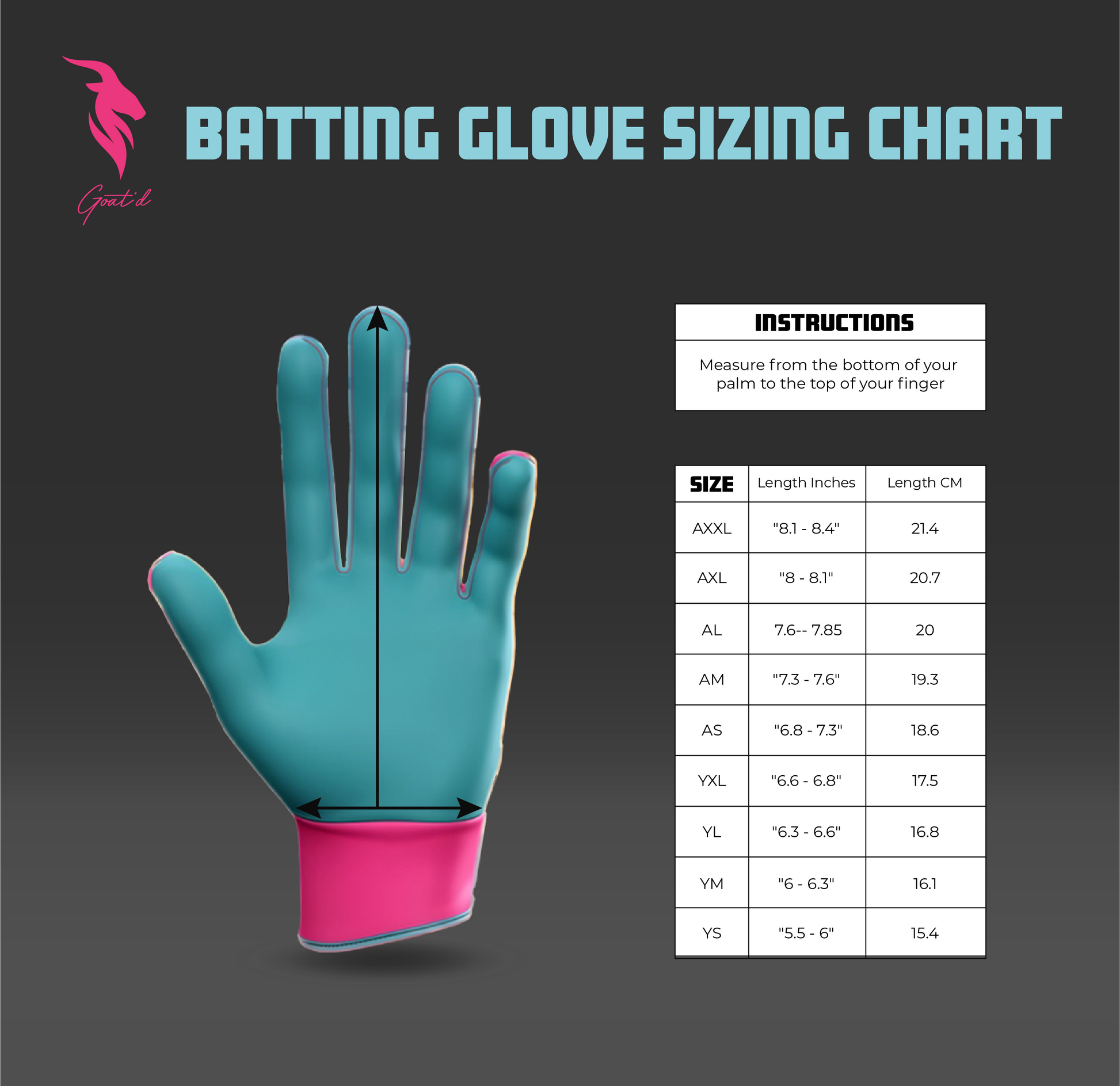 PSA: If you are buying youth size batting gloves, we recommended going up a size. If you are buying adult sized gloves, they are consistent with all major brands.