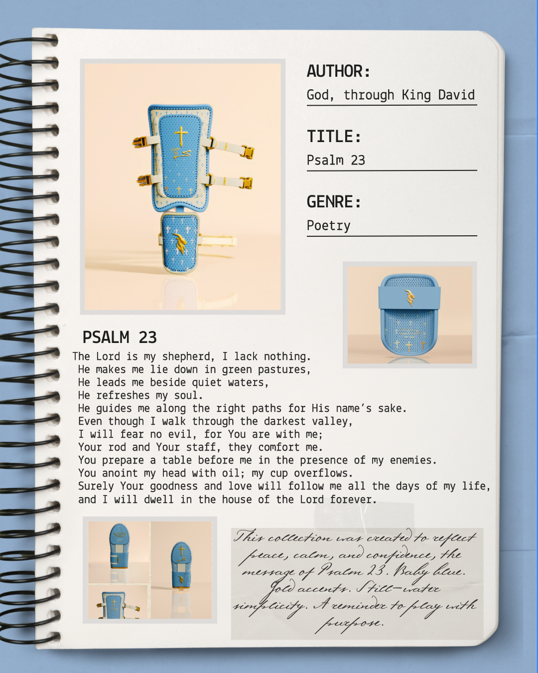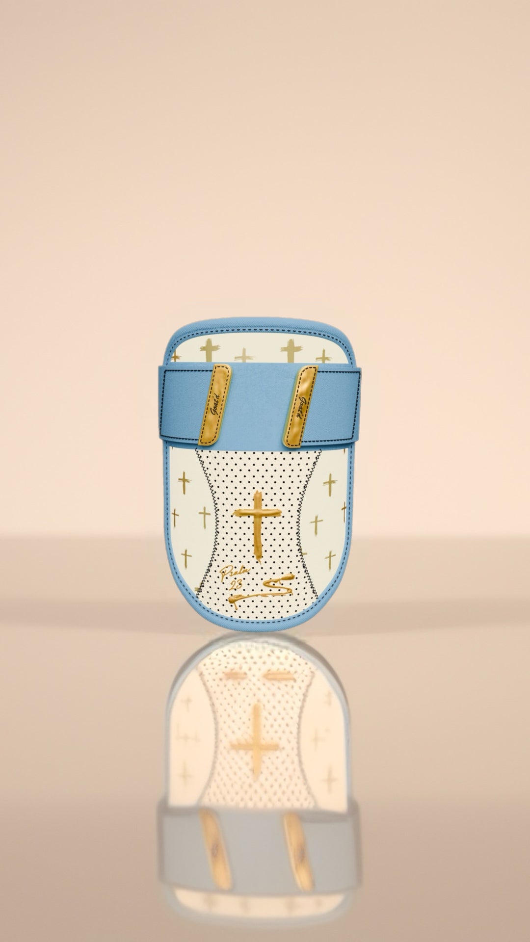 Baby blue and cream tones across all three pieces, built to bring peace, confidence, and purpose every time you step on the field.